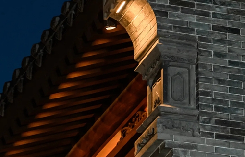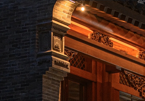 與之相對(duì)的17號(hào)樓主題為仙鶴,主題靈感來自于“仙鶴的故鄉(xiāng)”鶴壁。建筑上精美的墀頭也表達(dá)了此棟院子的主題,其上段位仙鶴,寓意松鶴延年,墀頭下端位仙鹿,寓意福祿綿長。而這處雕刻精美又涵義豐富的墀頭設(shè)計(jì)來源于河南鶴壁的古城摘星臺(tái)公園。