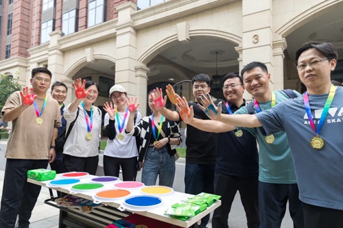 最后,集團(tuán)領(lǐng)導(dǎo)為各隊(duì)發(fā)放了紀(jì)念獎(jiǎng)牌,大家接過獎(jiǎng)牌,在手印墻按下了共同奮斗的印記,榮譽(yù)感和成就感溢于言表,“奮斗吧,城發(fā)人”的共識深深印刻在全員心中。